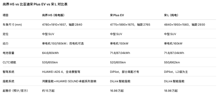 更重要的是,H5将成为15万级唯一标配HUAWEI ADS 4的SUV。这意味着L2+和L3级别的鸿蒙智驾体验,被直接压缩进了比亚迪宋的价位区间。